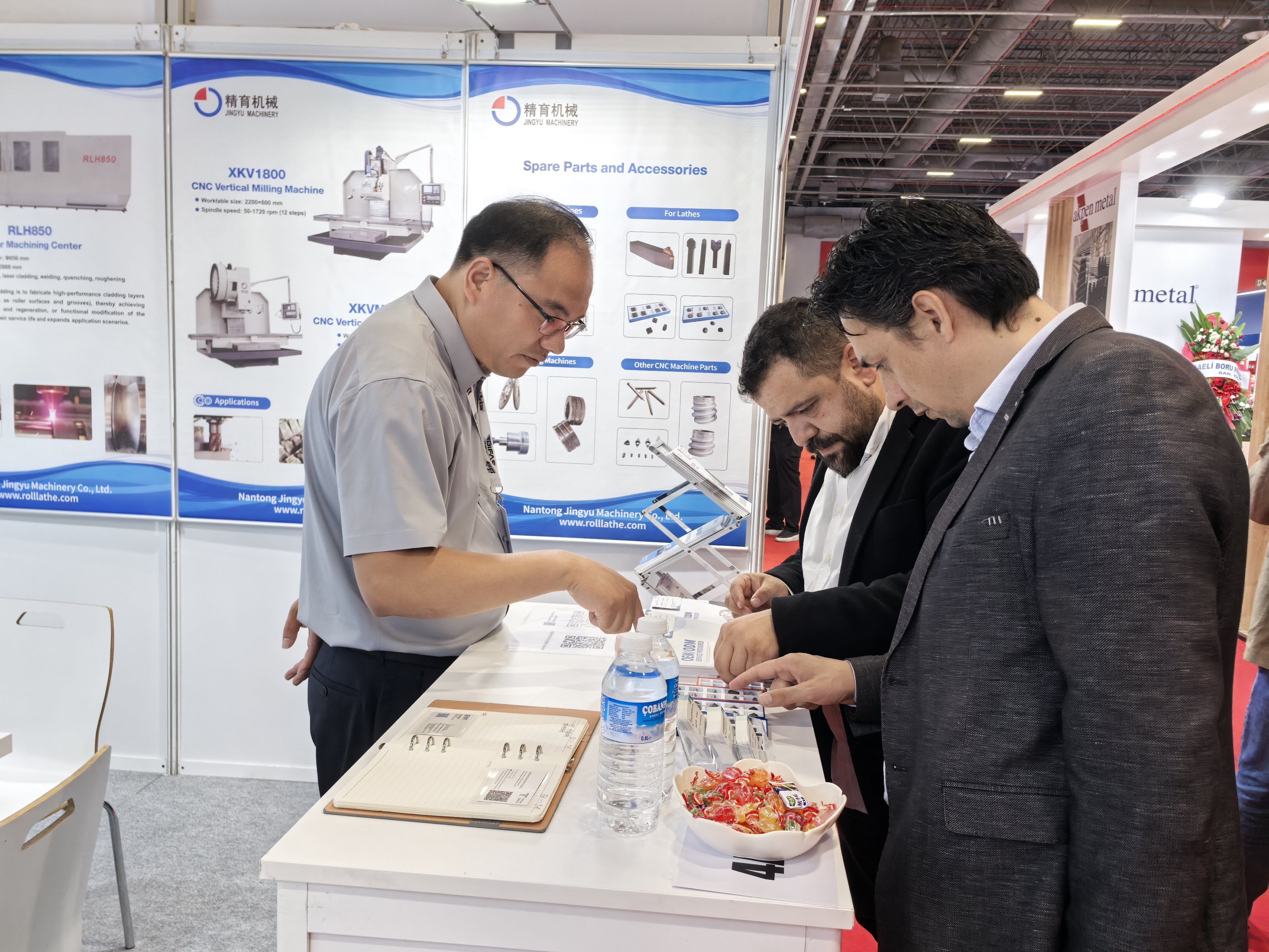 During the exhibition, the booth of Jingyu Machinery was constantly visited by a steady stream of visitors. The company prominently displayed its latest R&D achievements and full range of products in the field of roll processing equipment, drawing attention from enterprise representatives from Turkey, UAE, Iran, Iraq, Libya, Russia, and other countries. In-depth and enthusiastic discussions were held between the parties. Numerous visiting clients showed strong interest in procurement and collaboration regarding the CNC milling machines, lathes, grinding machines, and key spare parts exhibited by Jingyu Machinery. Seizing this excellent opportunity, the Jingyu Machinery team proactively engaged with representatives from several local Turkish steel companies, delving into technical requirements and market trends, and established initial business connections.